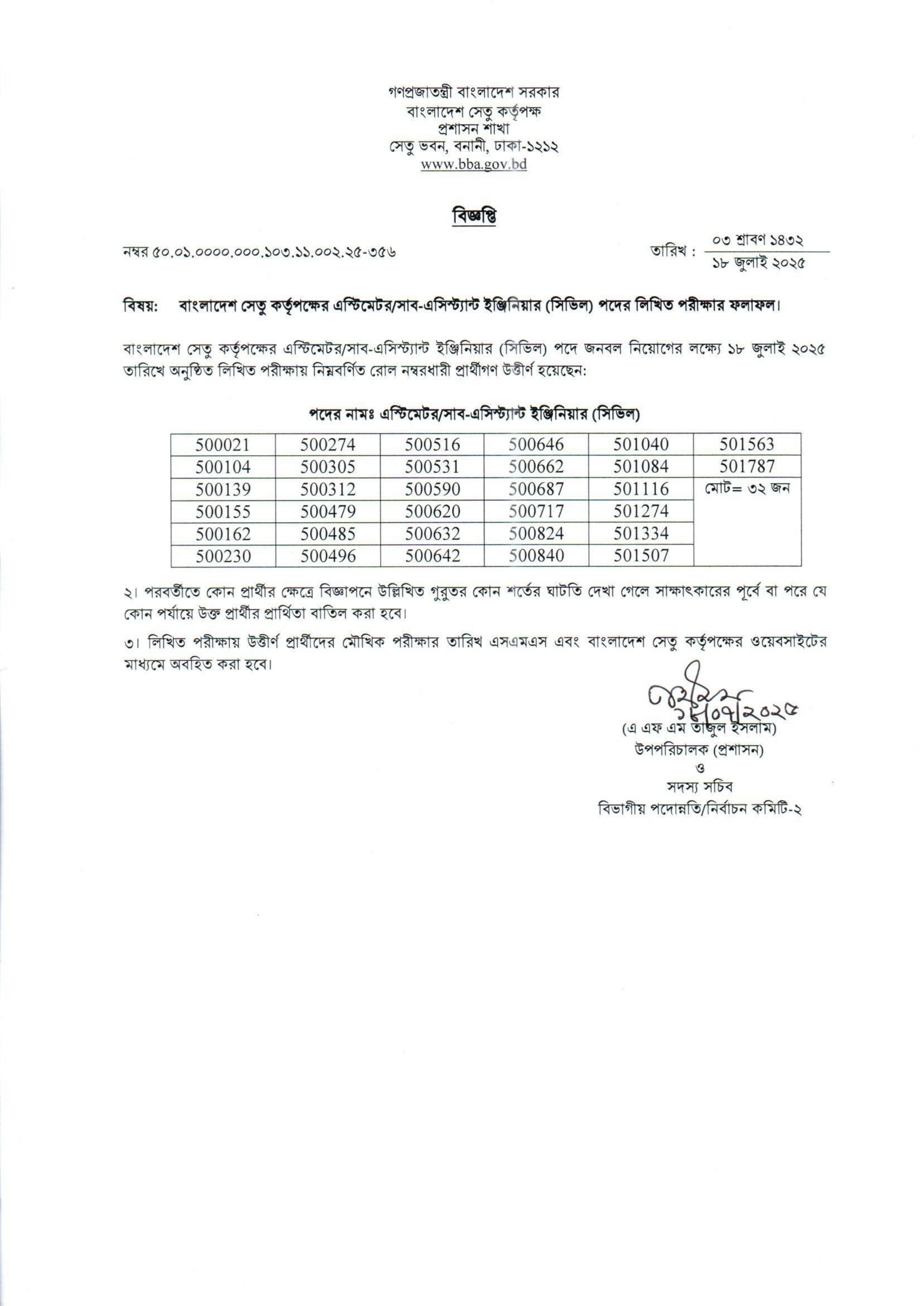 Written Exam Results Published by Bangladesh Bridge Authority | July | 2025|